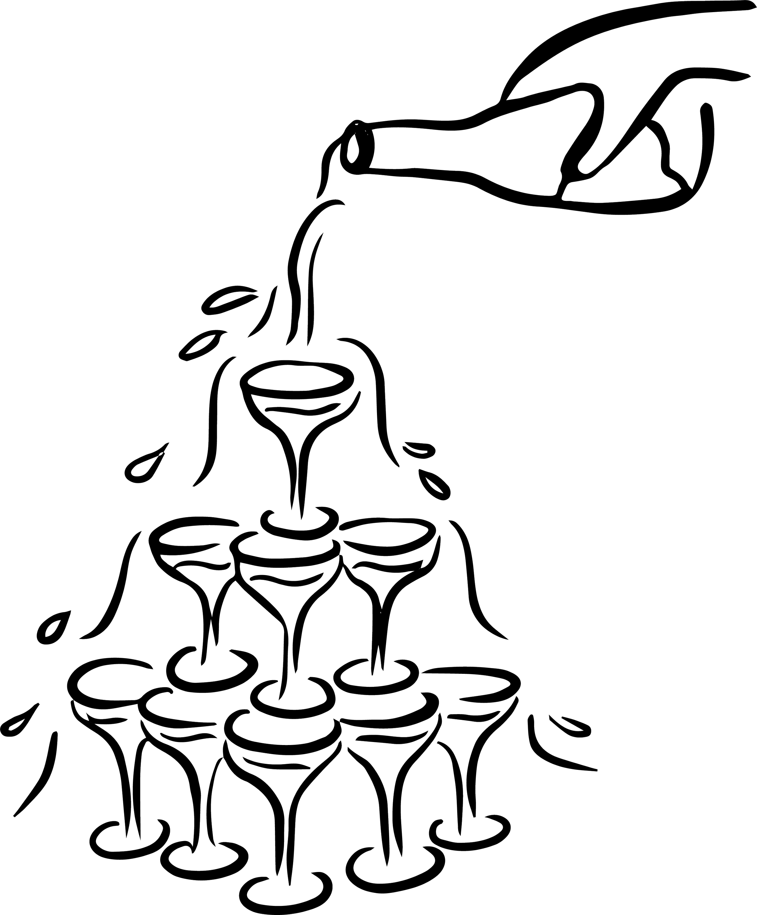 Black and white silhouette of a cat sitting with its tail curled around its body